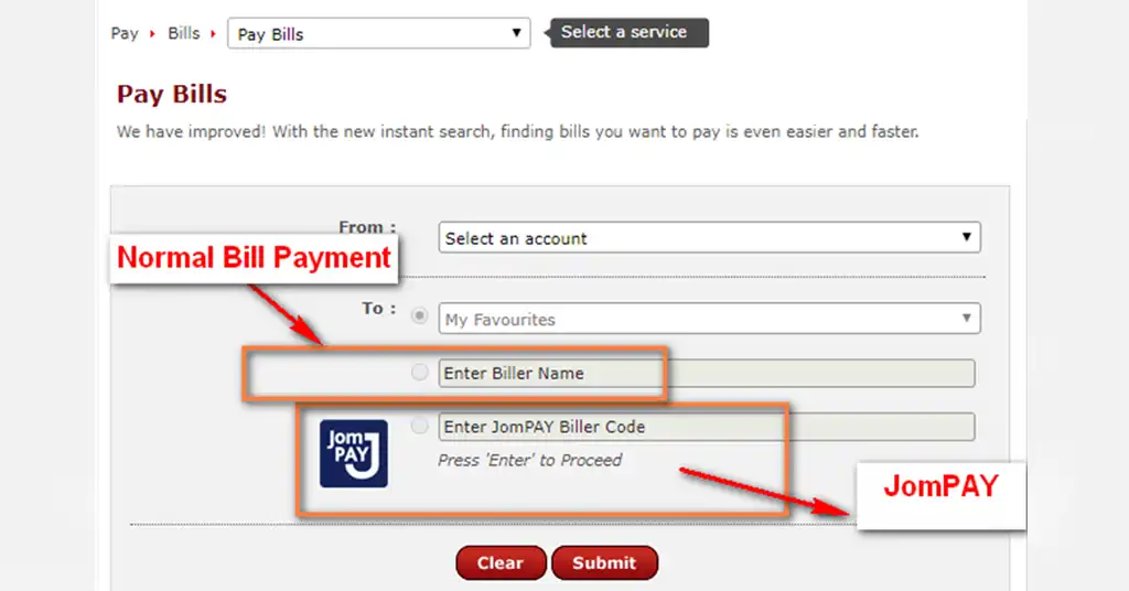 - Cari dan pilih ikon atau tab JomPAY dalam menu perbankan internet anda. Ini biasanya terletak di bahagian pembayaran atau bil.